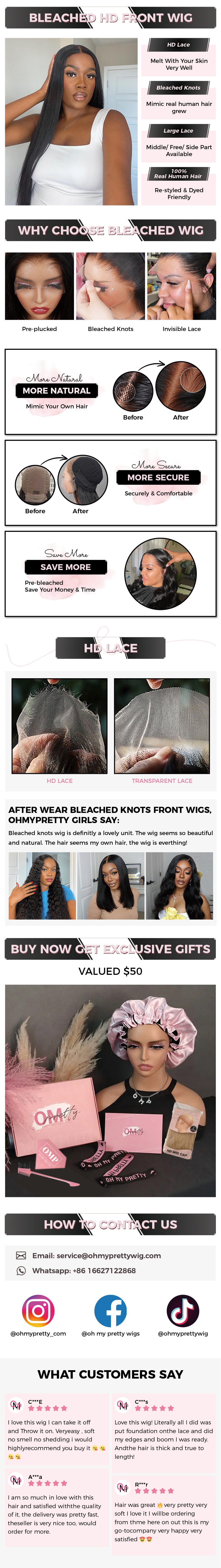OhMyPretty Straight 13x4 HD Lace Front Wig Prebleached Knots With Pre-plucked Edges