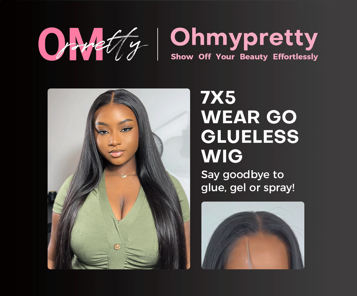 OhMyPretty Wear Go Glueless 7x5 Lace Straight Wig Super Natural Hairline Silky Human Hair Pre plucked &Pre Bleached & Pre Cut