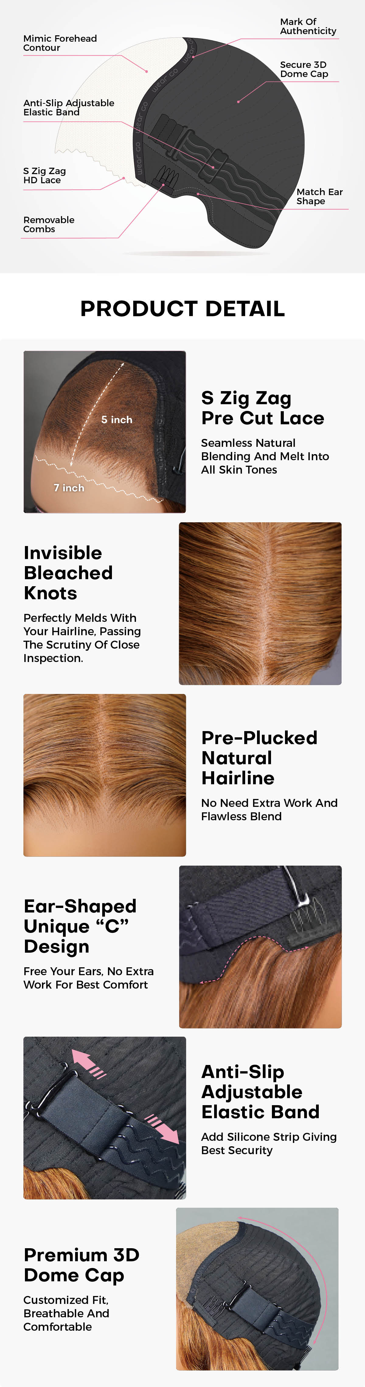 | Wig Design | Glueless, pre-cut, pre-plucked 7x5 lace wig |