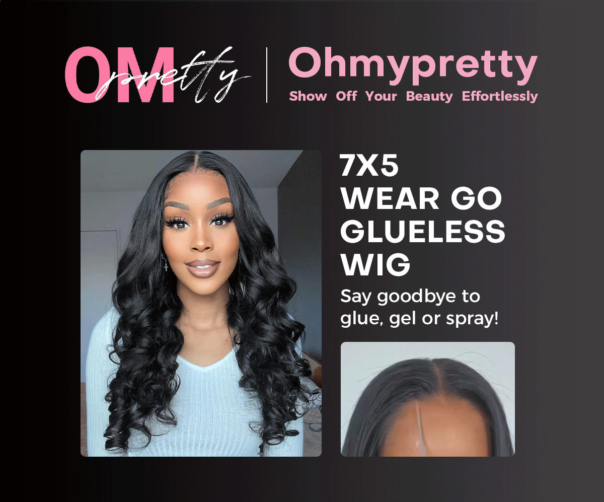 OhMyPretty Wear Go Glueless Ocean Wave 7x5 Lace Wig With Pre-plucked Edges Invisible Knots Pre-Cut Lace