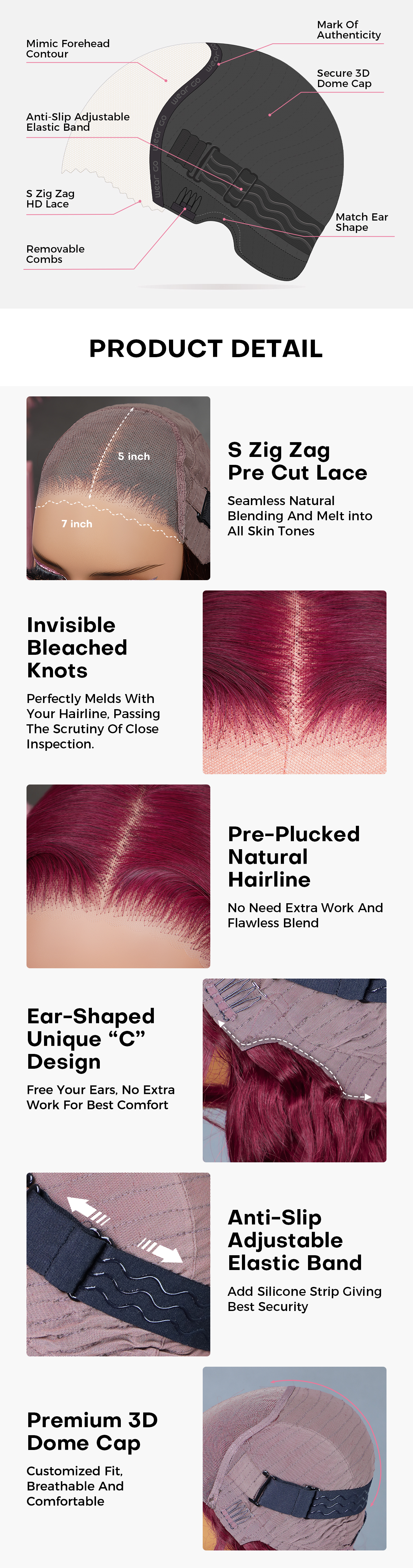 | Feature | 100% glueless wig, Pre-cut lace, Wear & Go, layered wigs |