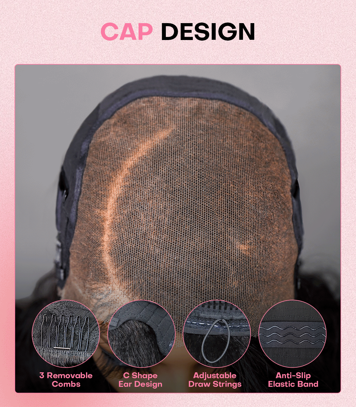 | Wig Cap | Medium size cap (about 22.5 inches), Removable combs, 3D Dome cap with elastic band,Invisi Draw Strings |