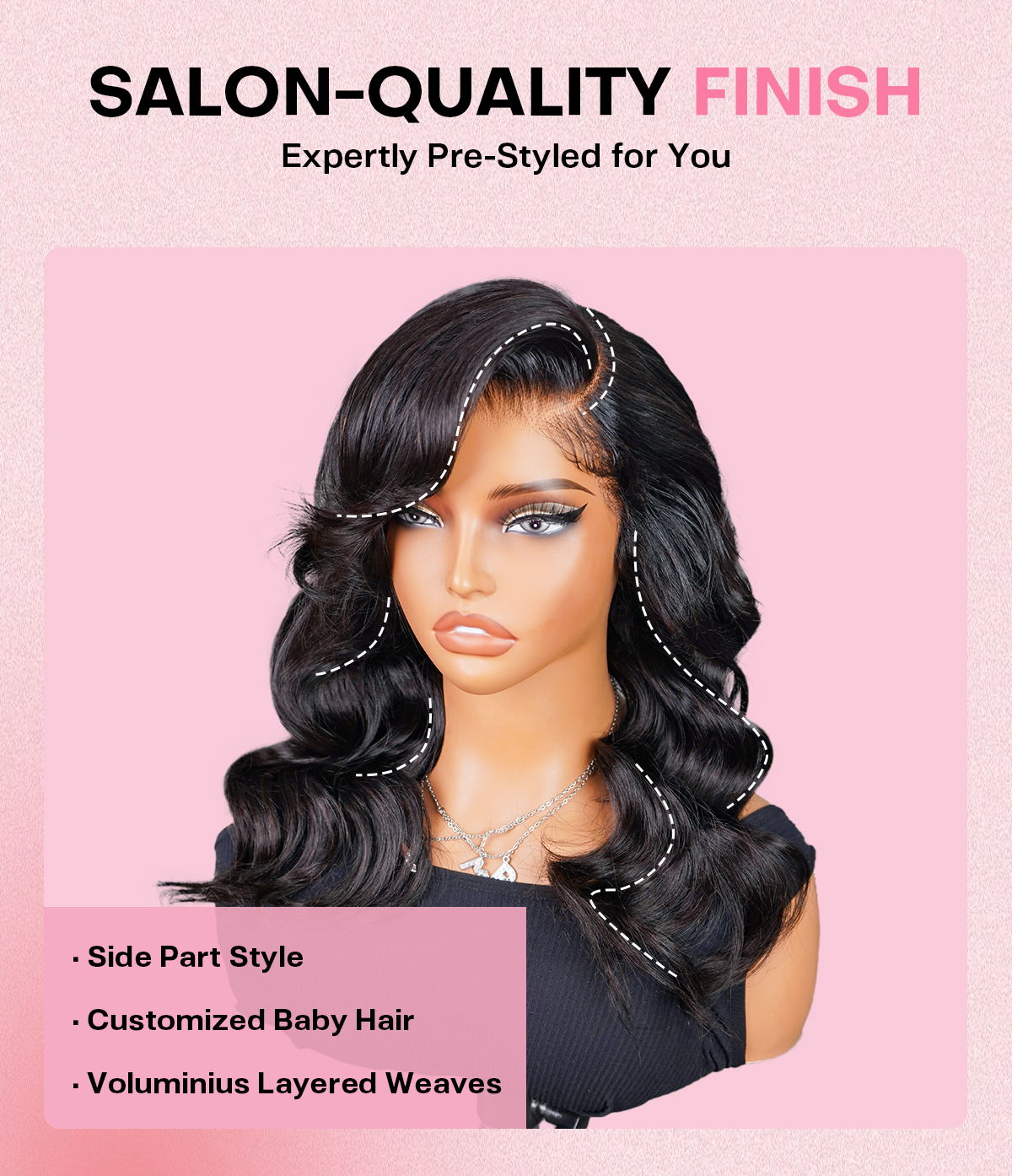 | Feature | Side Part ,Baby Hair, Layered Cut, 100% glueless wig, Pre-cut lace, Wear & Go |